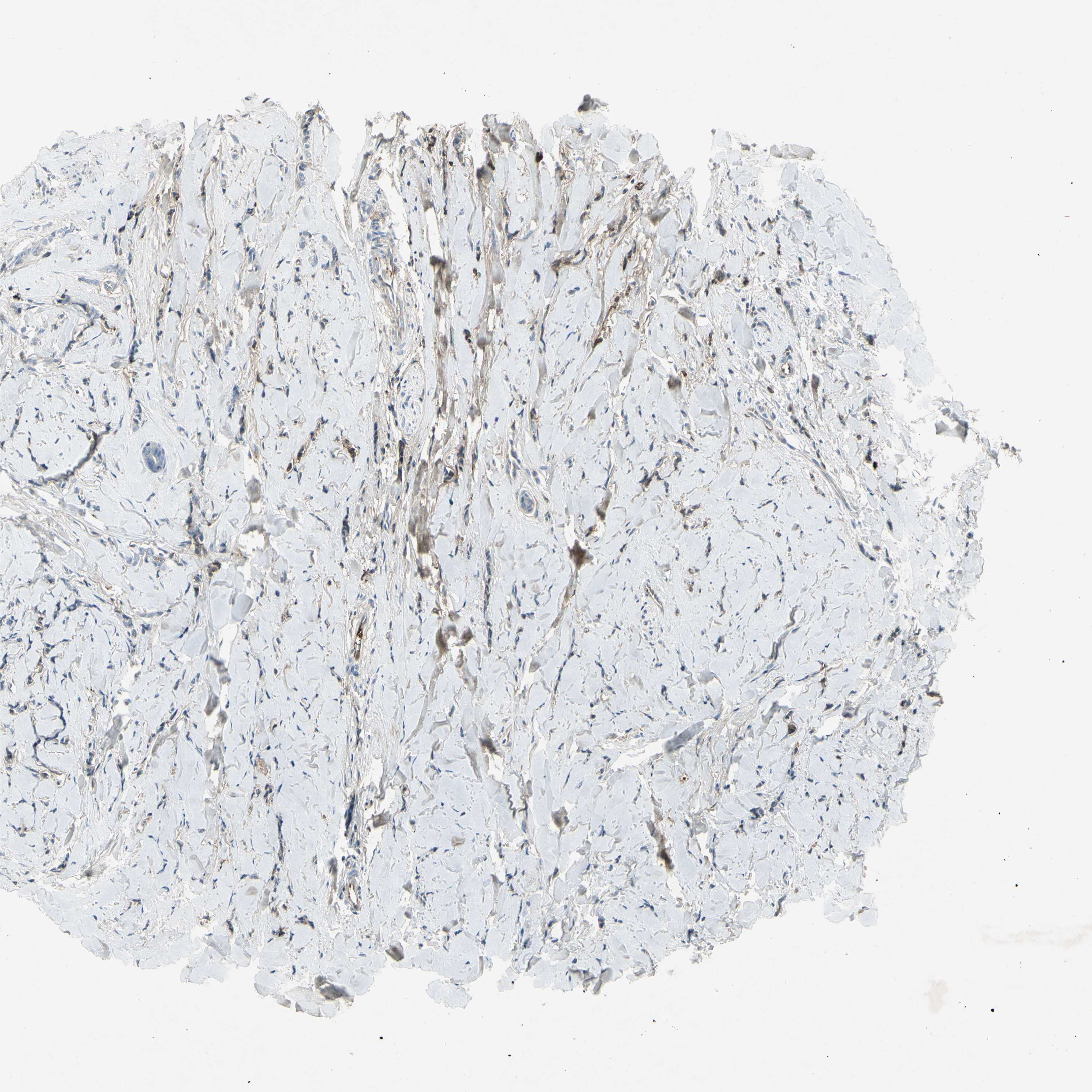 Antibody staining in the annotated cell types in the current human tissue is reported as not detected, low, medium, or high, based on conventional immunohistochemistry profiling in selected tissues. This score is based on the combination of the staining intensity and fraction of stained cells.