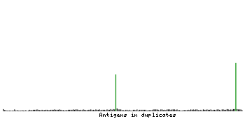At the top of the view, the position of the antigen (identified by the corresponding HPA identifier) is shown as a green bar. A yellow triangle on the bar indicates a <100% sequence identity to the protein target.