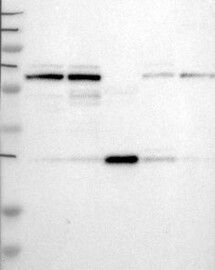 A Western blot analysis is performed on a panel of human tissues and cell lines to evaluate antibody specificity. For antibodies with unreliable result a revalidation using an over-expression lysate is performed.