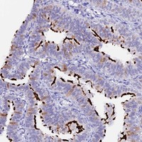Enhanced validation results in the score Enhanced and includes two methods: Orthogonal validation and Independent antibody validation. For orthogonal validation, representative images of high and low expression are shown. For independent antibody validation, four images of each independent antibody are displayed.