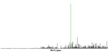 The curve in blue displays the predicted antigenicity i.e. the tendency for different regions of the protein to generate an immune response, with peak regions being predicted to be more antigenic.The curve shows average values based on a sliding window approach using an in-house propensity scale. (read more).