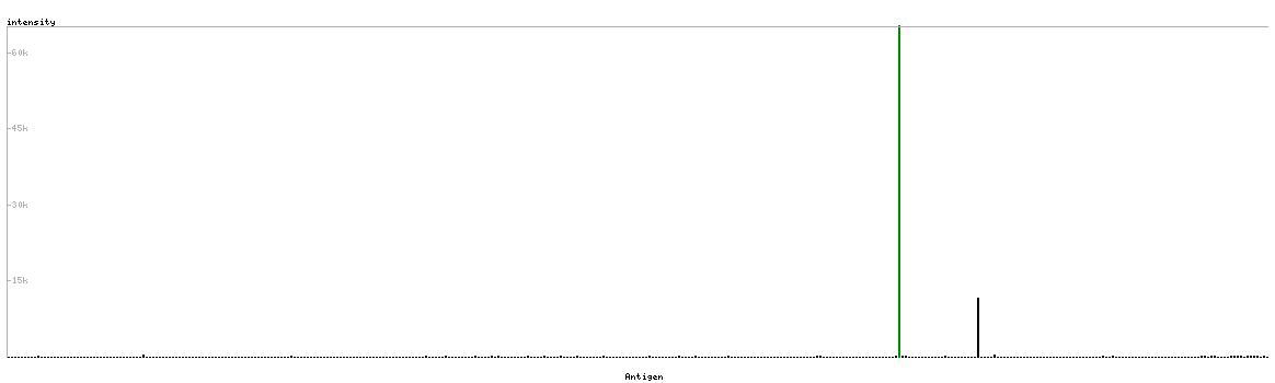 The curve in blue displays the predicted antigenicity i.e. the tendency for different regions of the protein to generate an immune response, with peak regions being predicted to be more antigenic.The curve shows average values based on a sliding window approach using an in-house propensity scale. (read more).