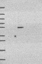 A Western blot analysis is performed on a panel of human tissues and cell lines to evaluate antibody specificity. For antibodies with unreliable result a revalidation using an over-expression lysate is performed.