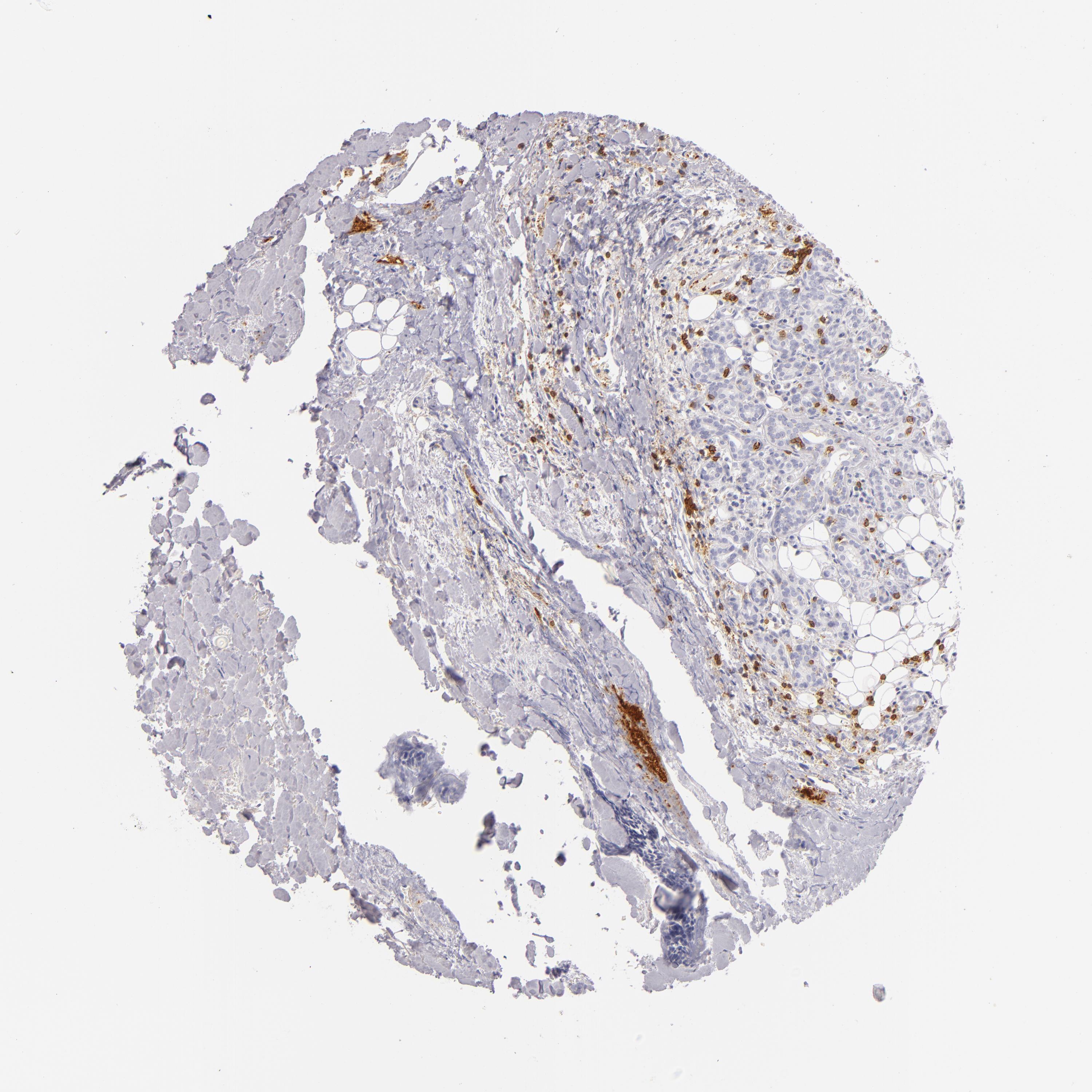 Antibody staining in the annotated cell types in the current human tissue is reported as not detected, low, medium, or high, based on conventional immunohistochemistry profiling in selected tissues. This score is based on the combination of the staining intensity and fraction of stained cells.