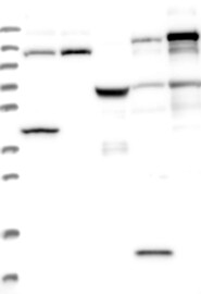 A Western blot analysis is performed on a panel of human tissues and cell lines to evaluate antibody specificity. For antibodies with unreliable result a revalidation using an over-expression lysate is performed.