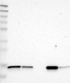 A Western blot analysis is performed on a panel of human tissues and cell lines to evaluate antibody specificity. For antibodies with unreliable result a revalidation using an over-expression lysate is performed.