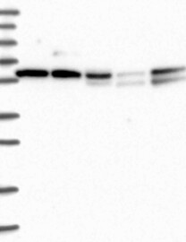 A Western blot analysis is performed on a panel of human tissues and cell lines to evaluate antibody specificity. For antibodies with unreliable result a revalidation using an over-expression lysate is performed.