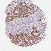 Antibody staining in the annotated cell types in the current human tissue is reported as not detected, low, medium, or high, based on conventional immunohistochemistry profiling in selected tissues. This score is based on the combination of the staining intensity and fraction of stained cells.