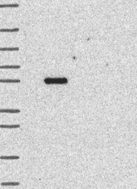 A Western blot analysis is performed on a panel of human tissues and cell lines to evaluate antibody specificity. For antibodies with unreliable result a revalidation using an over-expression lysate is performed.