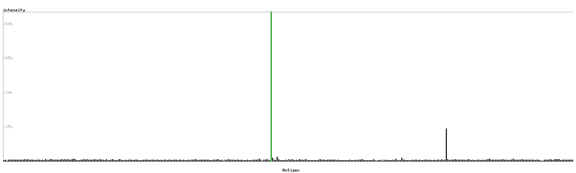 The curve in blue displays the predicted antigenicity i.e. the tendency for different regions of the protein to generate an immune response, with peak regions being predicted to be more antigenic.The curve shows average values based on a sliding window approach using an in-house propensity scale. (read more).