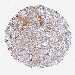 Antibody staining in the annotated cell types in the current human tissue is reported as not detected, low, medium, or high, based on conventional immunohistochemistry profiling in selected tissues. This score is based on the combination of the staining intensity and fraction of stained cells.