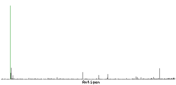 The curve in blue displays the predicted antigenicity i.e. the tendency for different regions of the protein to generate an immune response, with peak regions being predicted to be more antigenic.The curve shows average values based on a sliding window approach using an in-house propensity scale. (read more).