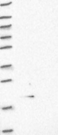 A Western blot analysis is performed on a panel of human tissues and cell lines to evaluate antibody specificity. For antibodies with unreliable result a revalidation using an over-expression lysate is performed.