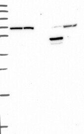 A Western blot analysis is performed on a panel of human tissues and cell lines to evaluate antibody specificity. For antibodies with unreliable result a revalidation using an over-expression lysate is performed.