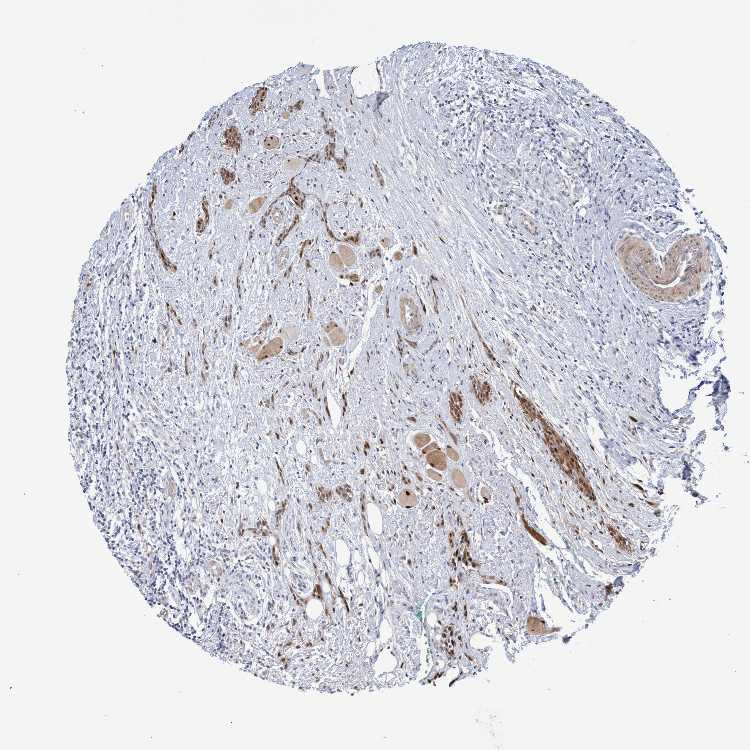 Antibody staining in the annotated cell types in the current human tissue is reported as not detected, low, medium, or high, based on conventional immunohistochemistry profiling in selected tissues. This score is based on the combination of the staining intensity and fraction of stained cells.