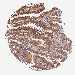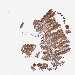 Antibody staining in the annotated cell types in the current human tissue is reported as not detected, low, medium, or high, based on conventional immunohistochemistry profiling in selected tissues. This score is based on the combination of the staining intensity and fraction of stained cells.
