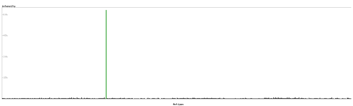 The curve in blue displays the predicted antigenicity i.e. the tendency for different regions of the protein to generate an immune response, with peak regions being predicted to be more antigenic.The curve shows average values based on a sliding window approach using an in-house propensity scale. (read more).