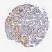 Antibody staining in the annotated cell types in the current human tissue is reported as not detected, low, medium, or high, based on conventional immunohistochemistry profiling in selected tissues. This score is based on the combination of the staining intensity and fraction of stained cells.