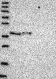 A Western blot analysis is performed on a panel of human tissues and cell lines to evaluate antibody specificity. For antibodies with unreliable result a revalidation using an over-expression lysate is performed.