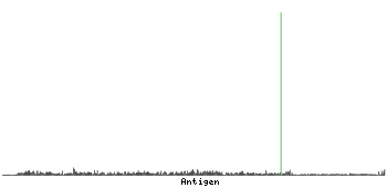 At the top of the view, the position of the antigen (identified by the corresponding HPA identifier) is shown as a green bar. A yellow triangle on the bar indicates a <100% sequence identity to the protein target.