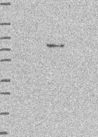 A Western blot analysis is performed on a panel of human tissues and cell lines to evaluate antibody specificity. For antibodies with unreliable result a revalidation using an over-expression lysate is performed.