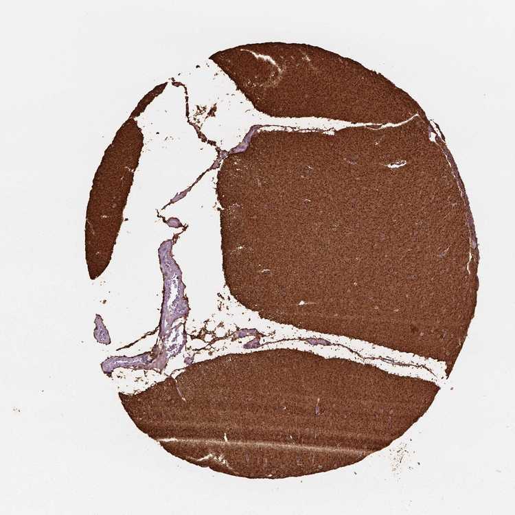 Antibody staining in the annotated cell types in the current human tissue is reported as not detected, low, medium, or high, based on conventional immunohistochemistry profiling in selected tissues. This score is based on the combination of the staining intensity and fraction of stained cells.
