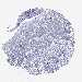Antibody staining in the annotated cell types in the current human tissue is reported as not detected, low, medium, or high, based on conventional immunohistochemistry profiling in selected tissues. This score is based on the combination of the staining intensity and fraction of stained cells.