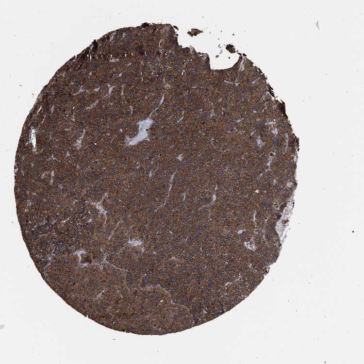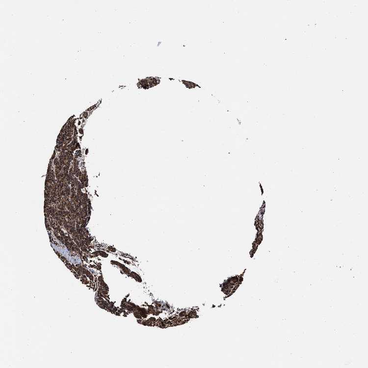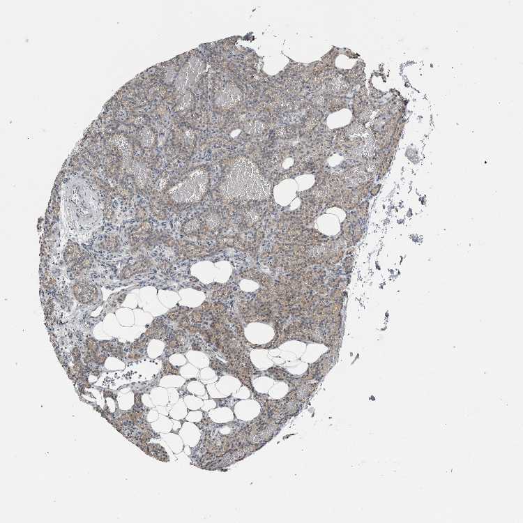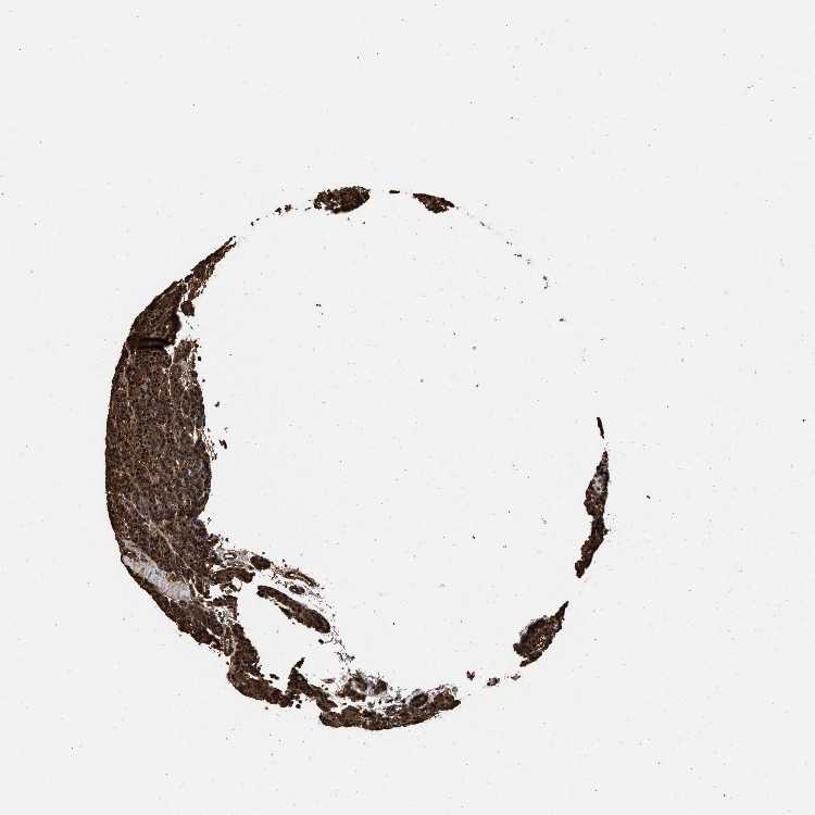 Antibody staining in the annotated cell types in the current human tissue is reported as not detected, low, medium, or high, based on conventional immunohistochemistry profiling in selected tissues. This score is based on the combination of the staining intensity and fraction of stained cells.